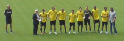 Interessant ist auch die Verteilung der Bahnfahrer: Jeweils sechs mal die Stunde kommt man vom Bahnhof aus in vier verschiedene Richtungen: Hagen, Hamm, Essen und Wanne-Eickel - das sind die größeren Bahnhöfe rund um Dortmund herum. Von diesen Bahnhöfen kann man dann jeweils in die entsprechenden Regionalzügen umsteigen und weiter nach Düsseldorf, Wuppertal, Oberhausen oder B*e*e*e*d fahren. Also unbedingt die Farbe merken, zu welchem Zug ihr müsst, um euch am Abend besser zu orientieren. Dazu gibt es überall Schilder.